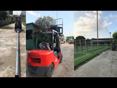 Video vận hành xe nâng Heli lắp bộ xỏ càng xuống gỗ tròn từ container: